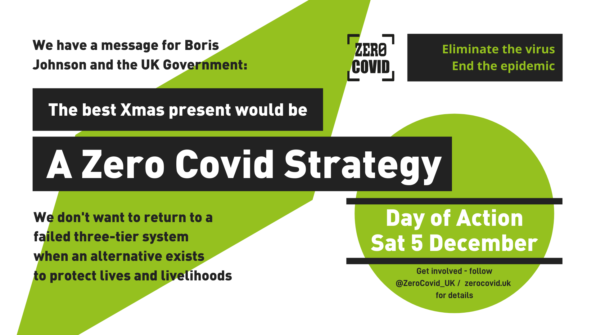 You can sign up for the campaign in order to find out what’s happening in your area and to join in on social media in pushing our hashtag #ZeroCovid. If you have an idea for an action please register it through the button below and we can help make it happen!